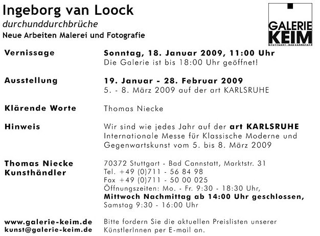 ![]() Ingeborg van Loock "durchunddurchbrüche" Ausstellung Galerie KEIM | ||