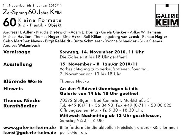 ![]() ZeitSprung 60 Jahre Keim Ausstellung Galerie KEIM | ||