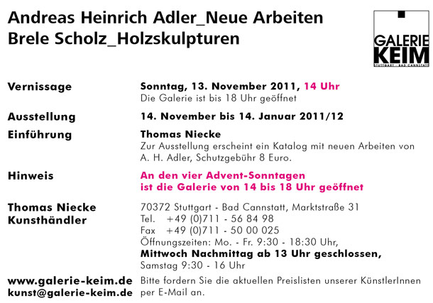 ![]() A.H. Adler / Brele Scholz 2011 Ausstellung Galerie KEIM |