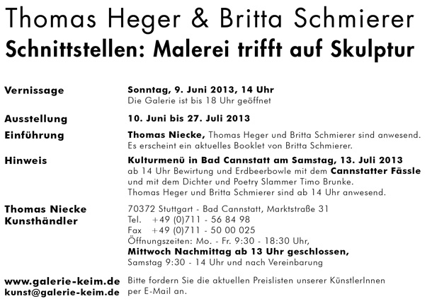 ![]() Schnittstellen 2013 Ausstellung Galerie KEIM | ||